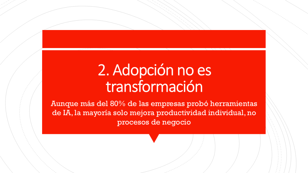 Estamos hablando de una brecha estructural entre adopción y transformación.