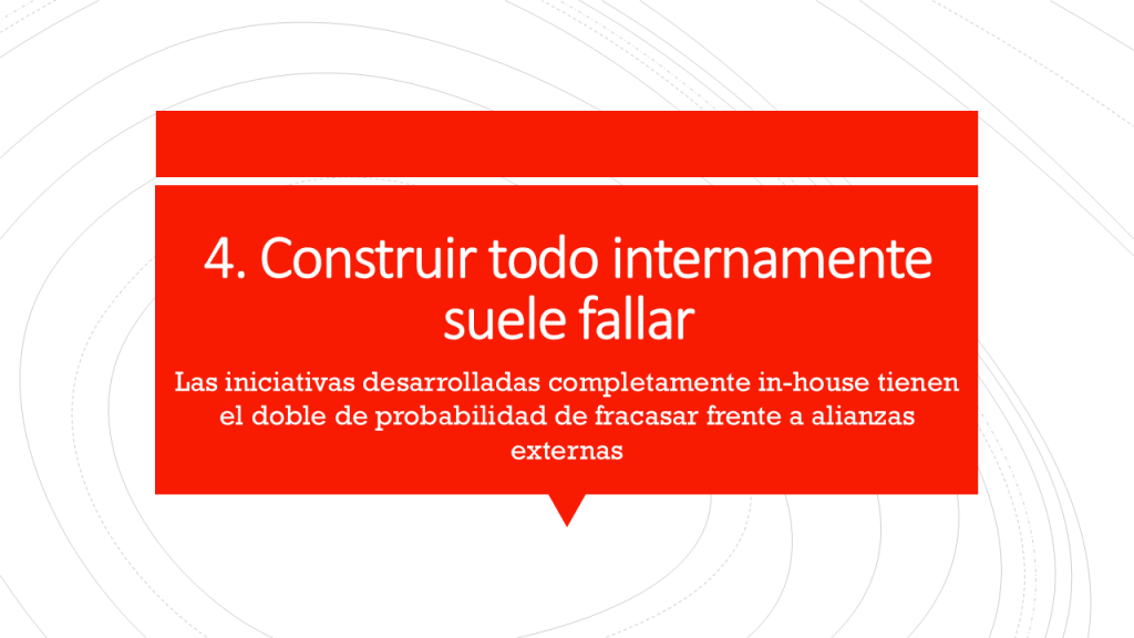 Otro punto interesante del estudio es que las soluciones desarrolladas completamente de manera interna fallan el doble que aquellas construidas con partners externos.